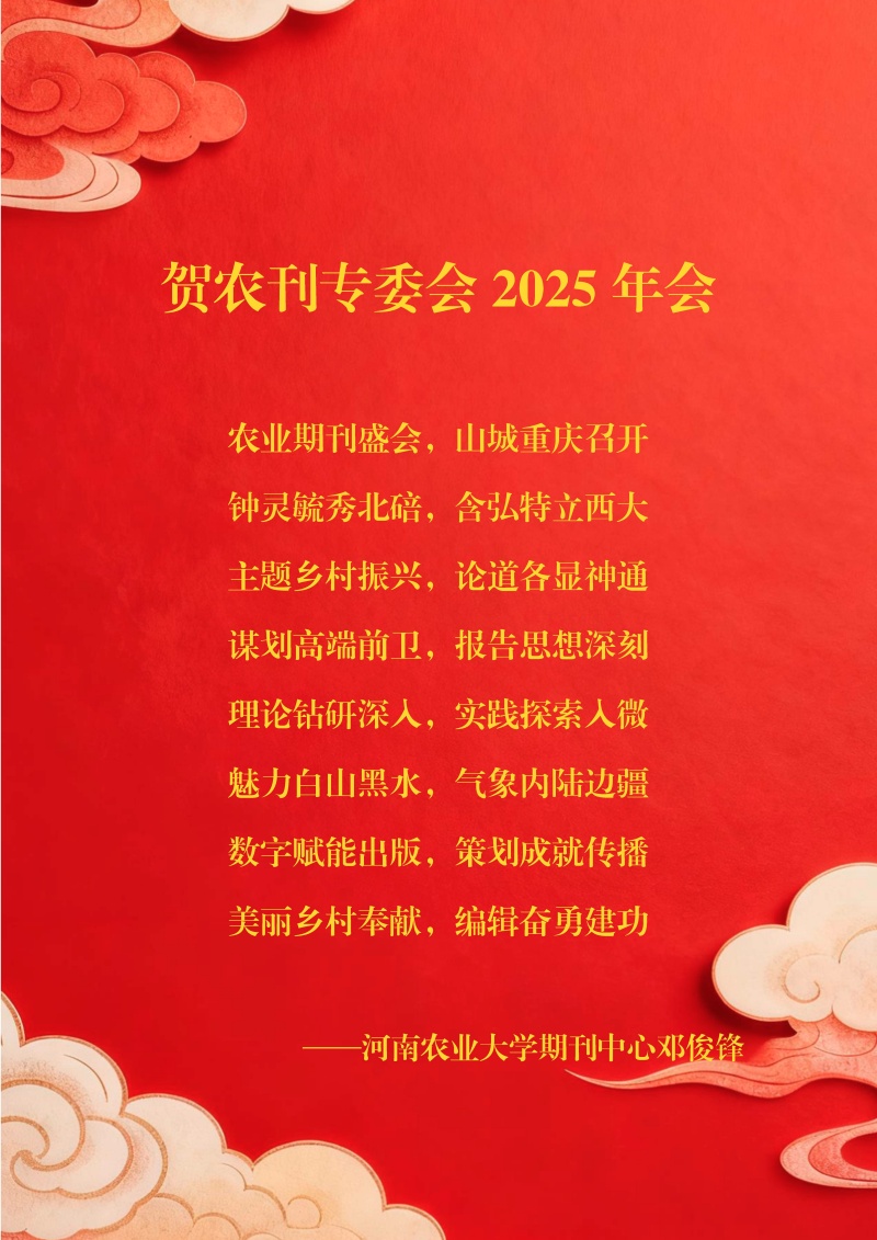 11月27—30日,中国高校科技期刊研究会农业期刊专委会2025年研讨会暨“学术期刊服务乡村全面振兴实践探索”研讨会在西南大学成功举行。来自全国涉农高校、科研院所、期刊出版单位的百余位专家、编辑出席会议,共话农业学术期刊高质量发展路径和服务乡村全面振兴的实践方略。我中心邓俊锋主任带队参加此次会议。