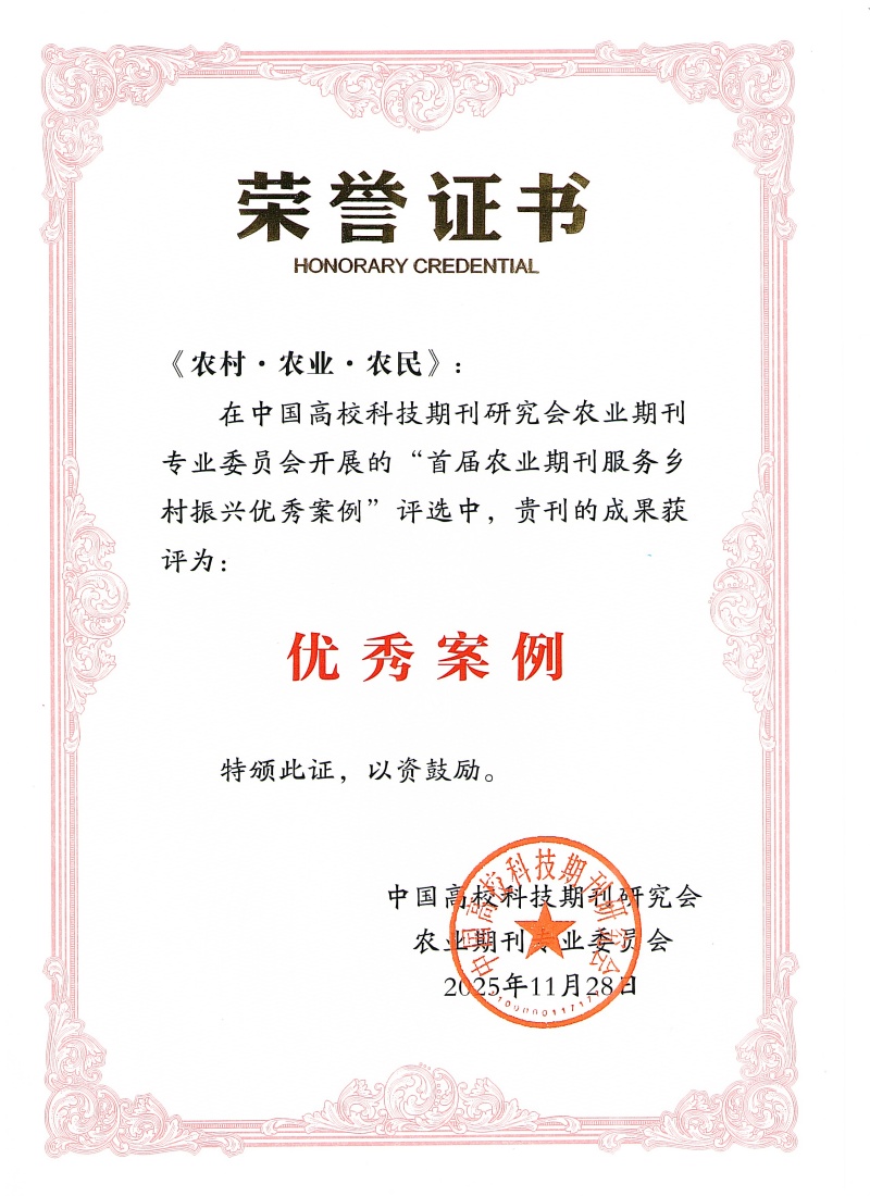 会议宣布了“首届中国高校科技期刊服务乡村振兴优秀案例”征集和评选结果。我中心《农村·农业·农民》荣获“优秀案例”。