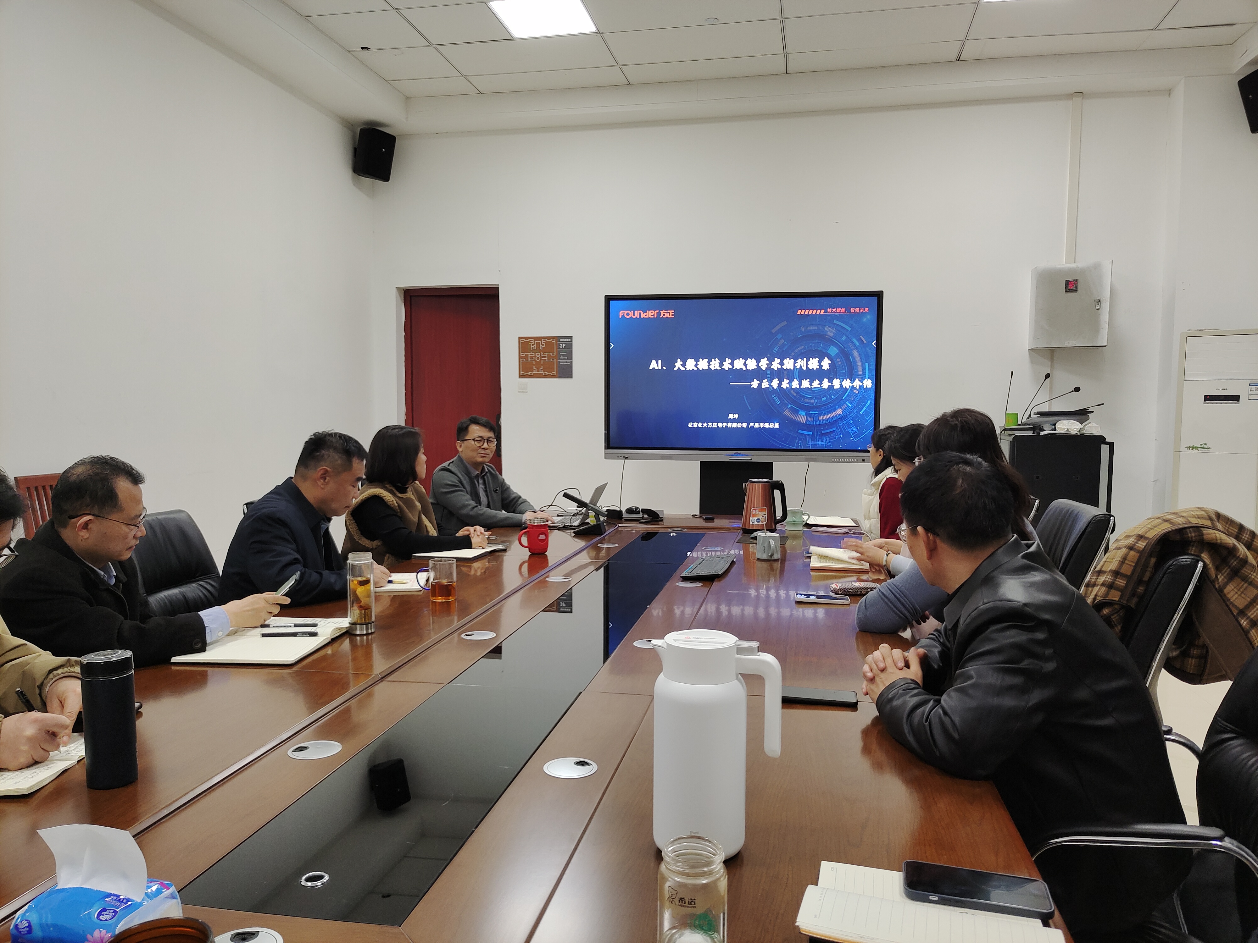 本网讯(通讯员 邵龙)3月19日上午,北大方正学术期刊产品总监周坤、市场推广总监张红岩一行来期刊中心开展业务技术交流,与全体老师围绕“AI大数据技术赋能学术期刊探索”主题举行座谈,深入探讨人工智能技术在学术出版领域的应用。座谈会由期刊中心副主任焦睿主持。